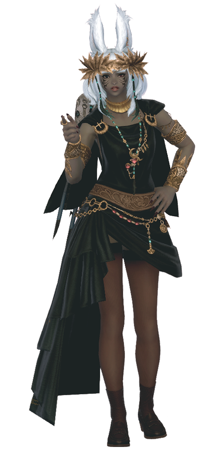 Thall was born in The Foundation of Ishgard to a runaway Viera couple who had met fleeing Dalmasca in fear of Garlean occupation. Her father, a culinarian, made money off of selling personal variations of popular Ishgardian soups and stews: fresher, more vibrant, and with no meat. Eventually recognized by a wandering son of noble blood, he had found himself as a private chef for noble families, allowing the family freeroam of The Pillars. Upon reaching Ishgard, Thall's mother quickly took an interest in machinery and spends most of her time servicing broken equipment at the Skysteel Manufactory, or tinkering with explosives in her studio.Despite overwhelming support from her parents, Thall had grown up believing she had no interests or talents (productive or otherwise) other than being able to cook a mean frittata- an accomplishment afforded to her under guidance from her father. Like many children, she had taken up occasional work under her parents- soon deciding she would much rather accidentally burn a filet than potentially lose an arm fiddling with grenades like her mother. It was in the kitchens of Ishgard that Thall had found her love of spinning stories and telling jokes.Alongside her father, Thall later ends up attending a traveling cuisine festival- part of the Eorzean Alliance's coalition efforts, aimed to showcase the beauty of food among different regions. With an empty stomach, she made quick work of every stall. One particular vendor, a Limsan named Lilitofu Nono, offered her a plate of varied dishes on the house. As she tasted each, he described flavor profiles and character notes Thall couldn't quite pick up on. He had obviously had much more time to develop such a unique and diverse palate. Quick to trust, Thall pleads with the vendor to mentor and hone her cooking skills. Soon enough, Thall is taken under Lilitofu's wing as his personal chef and bard.Who doesn't love dinner and a show?